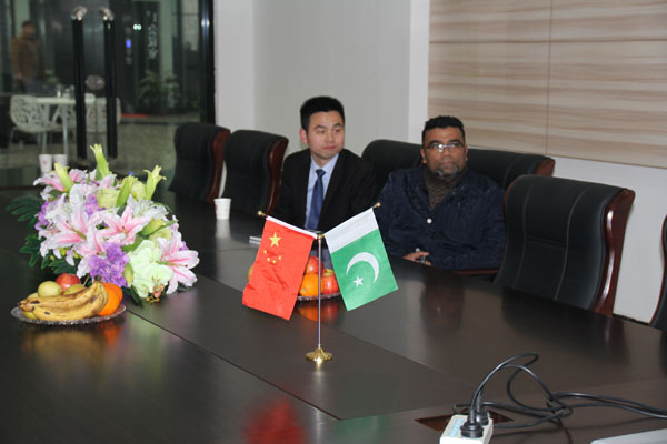 2015-1-24上午在東起集團在(外貿(mào)公司張總)的帶領下,一行四人來到公司,進行友好來訪,公司董事長王立建親自接待并陪同客人到車間觀摩。雙方在友好合作的前提下進行了細致的交談,并達成共識。巴基斯坦客人對東起公司做出了肯定,并草擬了合作意向書,此次來訪另客人在十分滿意的前提下***結束!